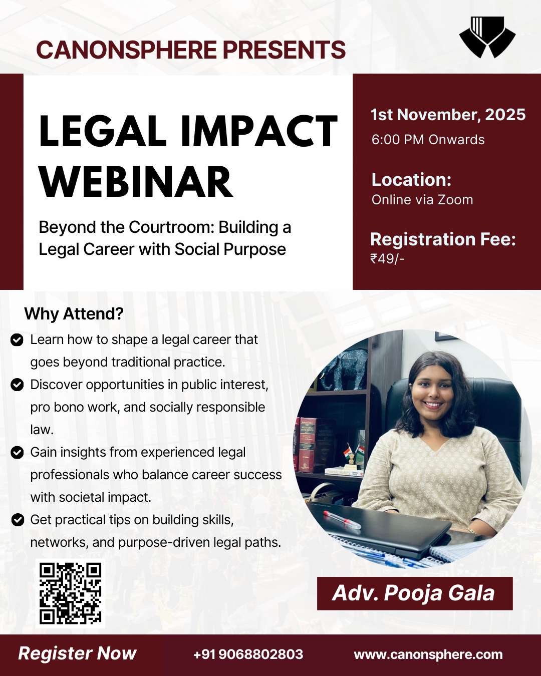 This webinar will take place on Saturday, 1st November, 2025, discovering on how to build a successful legal career while making a positive impact on society. The webinar will guide aspiring lawyers on aligning their professional growth with meaningful social contributions, exploring opportunities in public interest law, pro bono work, and socially responsible legal practice. Learn how to serve justice and thrive in your career simultaneously offers hands-on learning, real-world exposure, and exclusive participation perks.