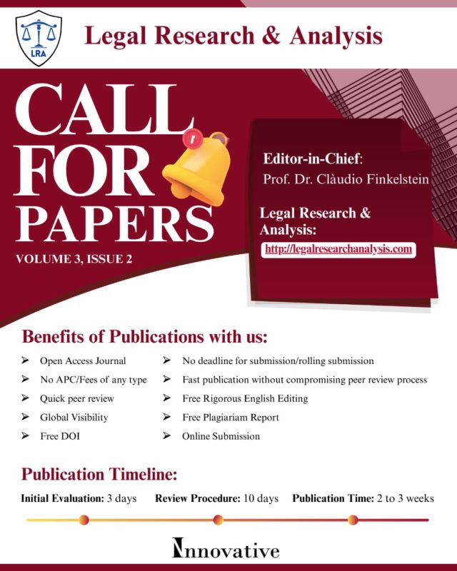 Legal Research & Analysis (DOI Prefix: 10.69971; ISSN: 3007-6455 (Online), 3007-6447 (Print) publishes research papers, review papers, case comments and books reviews related to all aspects of laws including but not limited to legal issues, legal systems, and the legal profession. Legal Research & Analysis is a multidimensional legal research journal, seeking scholarly work on any topic of theoretical, interdisciplinary, comparative, and other conceptually oriented inquiries into law and law reforms. Legal Research & Analysis particularly publishes articles that study law from such perspectives as legal philosophy, law and economics, legal history, criminology, law and literature, and feminist analysis. Legal Research & Analysis is a refereed journal, and all published articles are peer-reviewed.